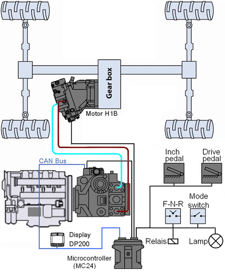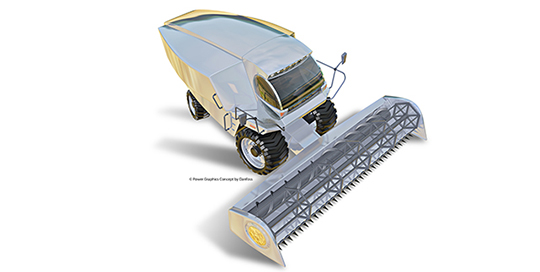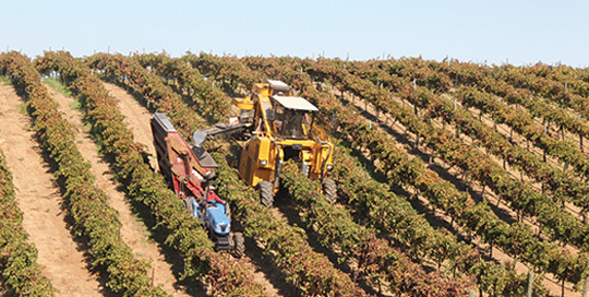 葡萄和橄榄的收割通常在陡坡的湿地上进行,这样的条件下会把牵引力的控制用到非常极限的情况。Oxbo 的通用答复为:这是一个电液控制系统的挑战,为了在减轻操作人员的负担的同时,节省燃料。