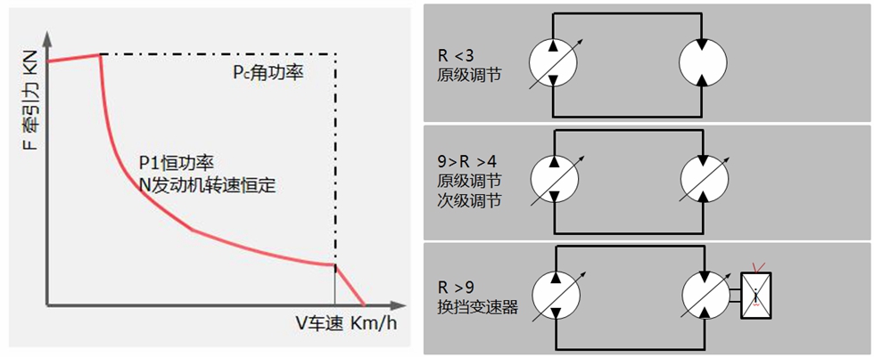 液压系统类型的选择往往基于角功率和行驶有效功率的比值。