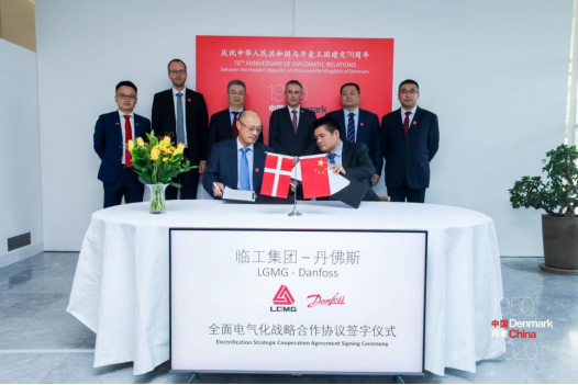 ▌早在11月12日,中丹两国政府在丹麦王国驻华大使馆举行仪式庆祝两国建交70周年。 活动期间,丹佛斯同中国工程机械行业四大集团之一——临工集团签署全面电气化战略合作协议,双方将联手致力于矿用卡车、挖掘机和装载机等领域的电气化应用开发。