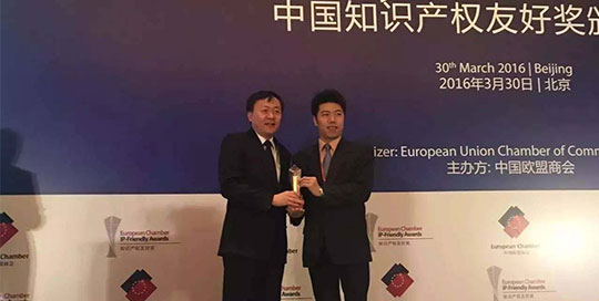 2016年3月30日,欧盟商会主办的知识产权创新与发展大会暨“知识产权友好奖”颁奖仪式在北京成功举办。“知识产权友好奖”分为透明度、效率、合作、威慑力和公正性等五大奖项类别。丹麦最大的工业集团丹佛斯作为奖项提名者和颁奖嘉宾,向上海市政府代表颁发“最佳合作奖”,以感谢和表彰上海市政府行政和执法部门对企业知识产权和消费者合法权益的大力维护。