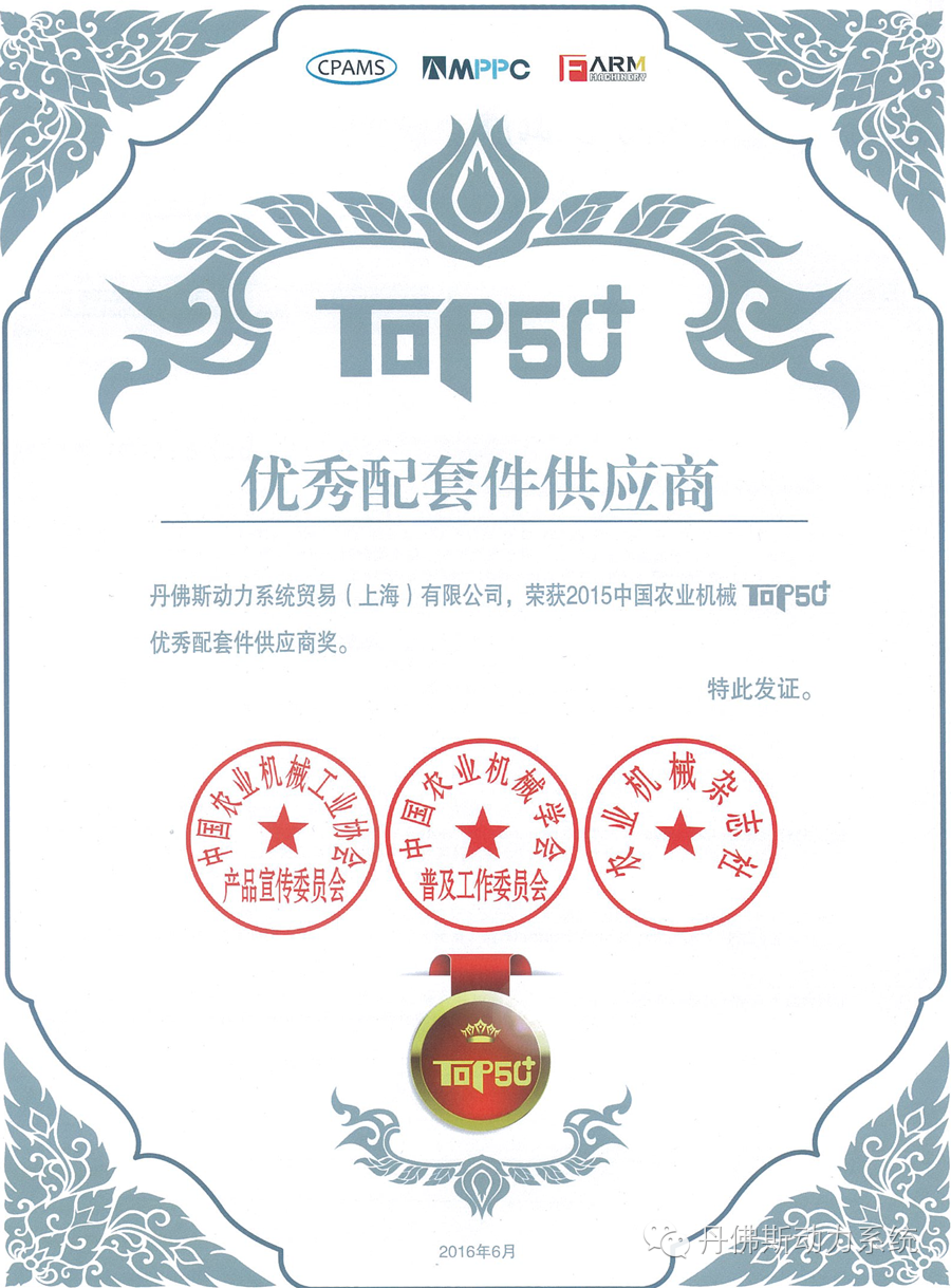 丹佛斯动力系统今年携 OSPE 转向器又一次荣获了中国农业机械 Top50 年度优秀供应商奖!