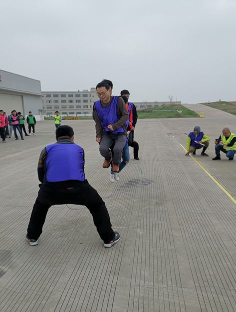 运动会现场所有队员都充满着激情,热情洋溢的脸上透露着对胜利的渴望。第一个趣味项目是跳大绳,每队队员卯足劲儿,步调一致乃是关键。你瞧!空中飞人凌空出现!