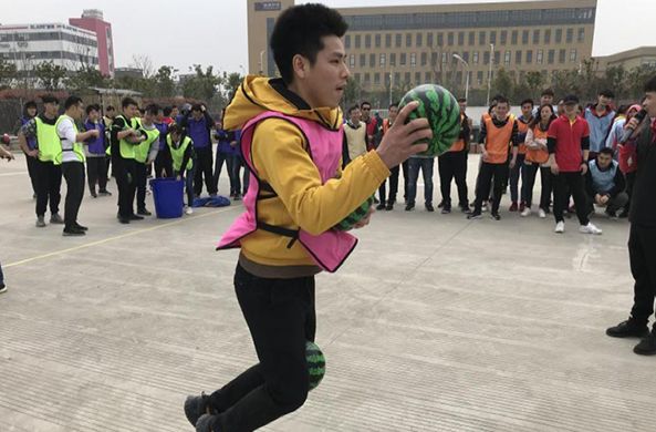 是不是觉得不过瘾?那现在让你体验一把更刺激的项目。袋鼠运西瓜和疾风营救。西瓜不仅要运的多,而且中途不可以掉落,这真的太考验我们的队员了。疾风营救就两块板只能靠每队队员齐心合力来完成了!加油!各小队!