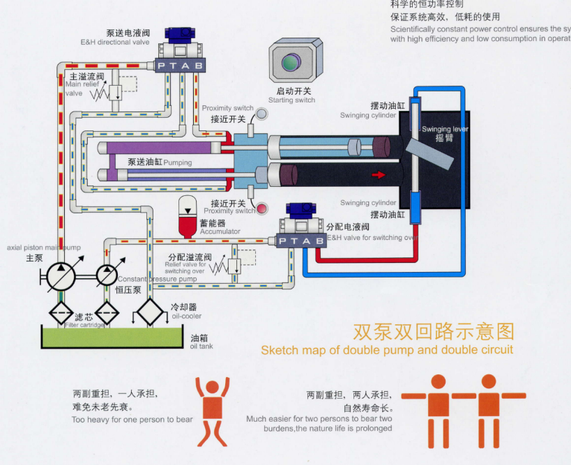 推荐使用Danfoss S45系列负载敏感泵,加OSPC系列的转向器,实现低噪声、低泄漏、低扭矩,转向平稳,无凸点感,操作舒服。同时负载敏感系统发热更小,更节能。