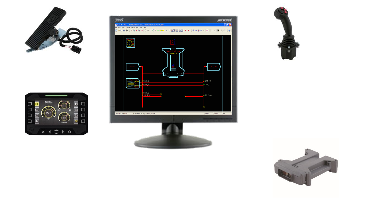 轮式湿喷机采用的是一泵一马达桥驱系统。通过Danfoss的Automatic Control控制,使得操控机器如同我们开自动档汽车一样简单。通过读取发动机转速信息,设定发动机转速与油泵和马达的排量控制电流之间的曲线关系,实现整车在前进后退过程中操作的舒适性和平稳性。同时程序中还带发动机发熄火功能,发动机超速保护,刹车灯蜂鸣器和故障状态报警功能,以及SIL安全保护等功能,既满足功能要求,又具有很高的安全性。通过电控程序,能够方便地调节车辆的行驶特性,缩短整车开发周期。