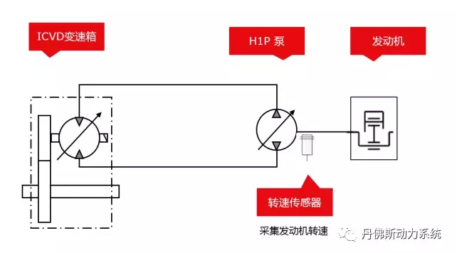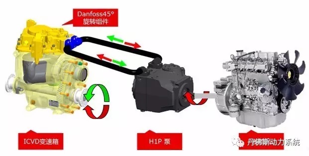 发动机→H1P泵→Danfoss 45° 旋转组件→变速箱→给前后驱动桥